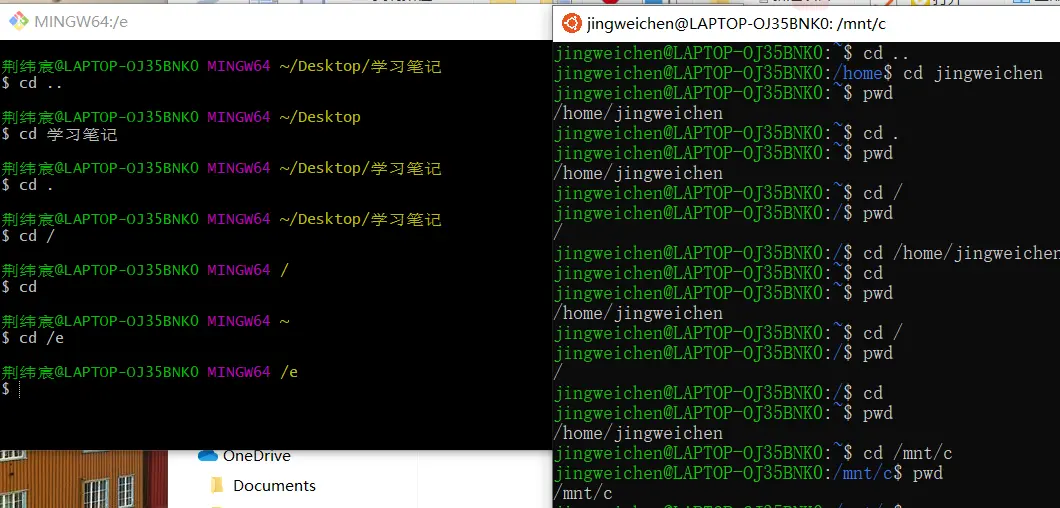 cd/mnt/c 访问windows文件系统c盘