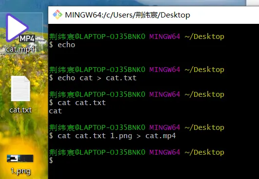 cat图片和exe成一个png,将png后缀名改为rar,可以解压缩出exe