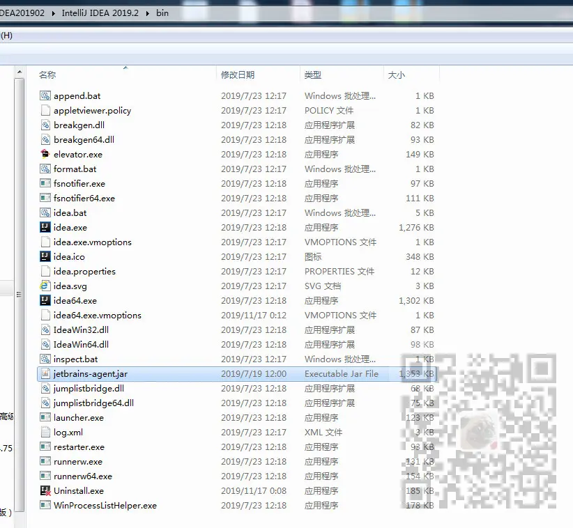 然后将PJ包jetbrains-agent.jar放在IDEA安装目录下的bin目录下
