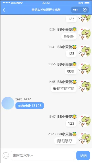 我们先接受消息,然后先更新指定群组名的聊天群组的聊天记录,然后再使用PUT的方式访问接口添加聊天记录到数据库中。