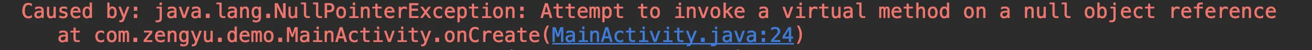 可以看到奔溃栈信息会显示具体是哪个文件出现了空指针,以及具体哪一行。在我们这个例子里面就是 MainActivity.java 的 24 行。
