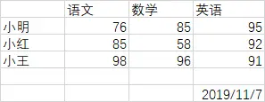 ['小明', 76.0, 85.0, 95.0, '']