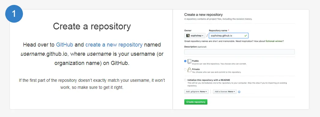 仓库名字必须为你的用户名+.github.io,否则需要另外设置。