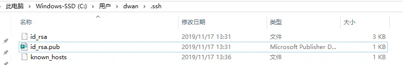 第三步,命令执行成功后会在你的电脑的C:\Users\你的用户名\.ssh的文件夹中,生成下面的文件。