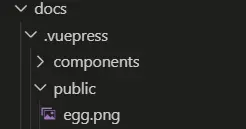 还有得明确一个概念,vuepress的文件寻址,不同类型的文件都已经预设好不同的默认路径。比如说上一步的logo图片引用的路径,就是遍历docs/.vuepress/public/egg.png寻找文件,我们只需要把图片放在这个文件夹就可以了。markdown的文件就按我写的放在docs/pages文件夹下,里面每个文件夹名字就是一个子路径。如此类推。每个不同类型的文件必须放置在按照规定好的位置。
