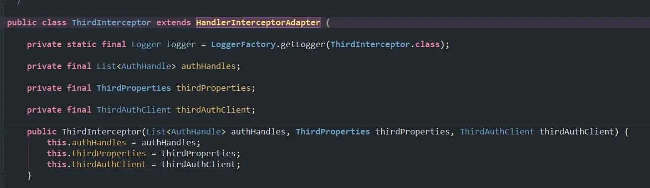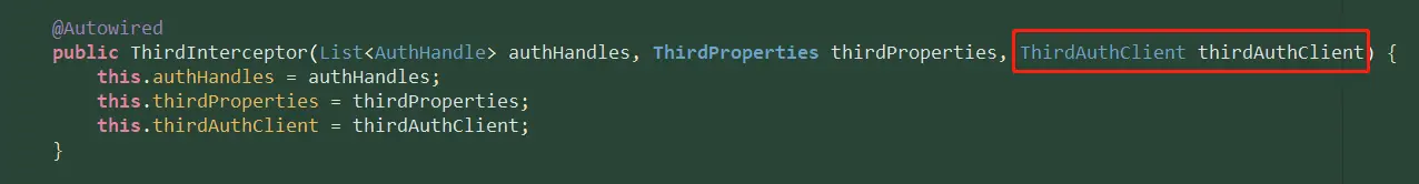 1.2,而拦截器中也是通过构造器方式,依赖一个thirdAuthClient