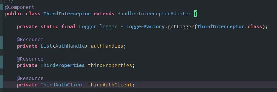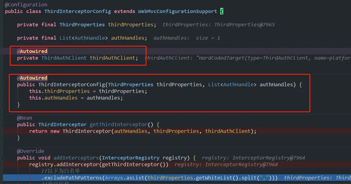 拦截器的所有依赖(比如ThirdAuthClient)被初始化bean并注入Spring容器