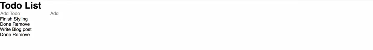 在底部的div中,我们将遍历已添加的每个 todo,并显示text数据和两个按钮。第一个按钮可以让我们将 todo 标记为已完成或未完成,第二个按钮可以将 todo 完全删除。是不是感觉 So Easy?