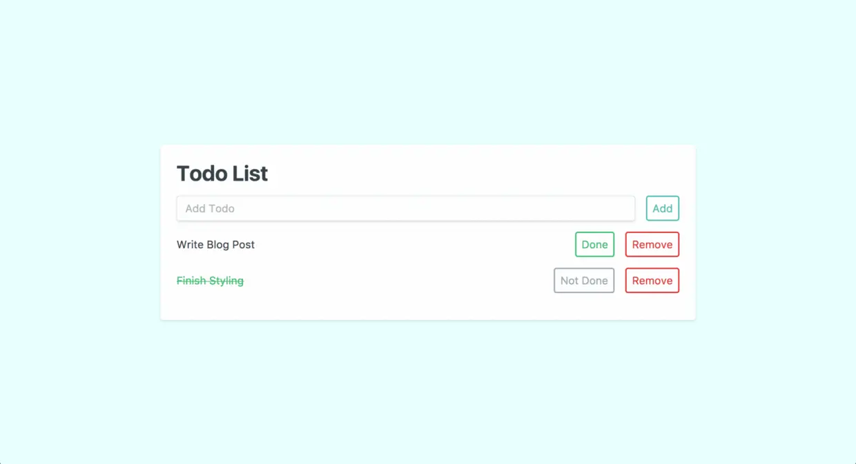 现在,我们可以将焦点放在我们的组件样式上。让我们从一些基本的组件开始,这样我们就可以看到我们在处理什么。在todo.vue文件中的div包装器上,我们可以添加.bg-white,.rounded,.shadow,以及.p-6 class,从而来制作一个漂亮的 card。