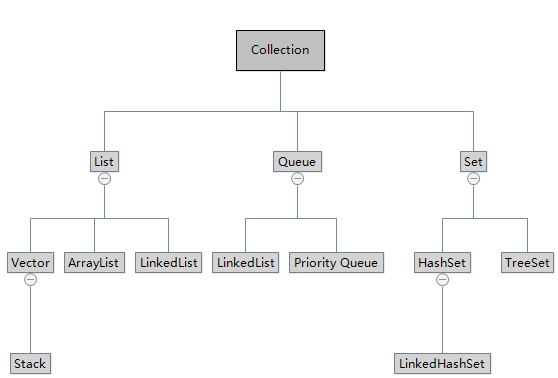 Collection:是最基本的集合接口,一个 Collection 代表一组 Object,即 Collection 的元素。它的直接继承接口有 List,Set 和 Queue。