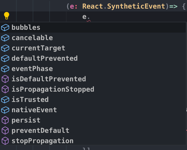 在定义 React 各类事件时候,使用 ts 我们可以根据业务场景去定义不同的事件类型来对代码进行静态检查。