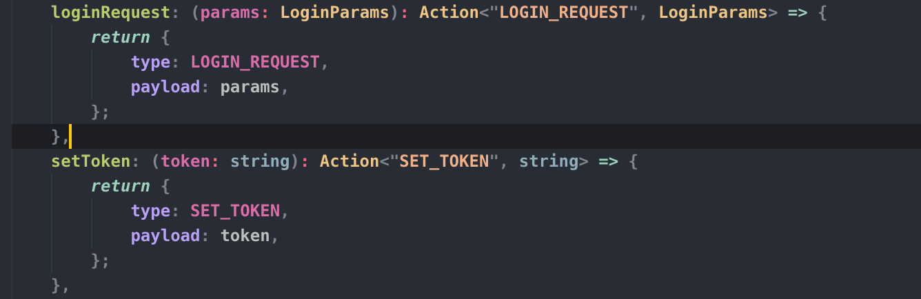 上面的方法只是我们对 action 的类型进行了定义,当我们业务有多少个请求和交互要发出,可能就会有多个 Action。你也可以定义一个函数来生成 Action,这个函数就叫 Action Creator。
