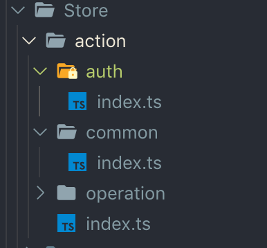 既然对 action 进行约束,我们需要在代码上获取到当前所有的 action 种类。通常我们会在 store 仓库中新建 action 目录,在里面存放所有的 action 并在 index 中进行导出。像这样: