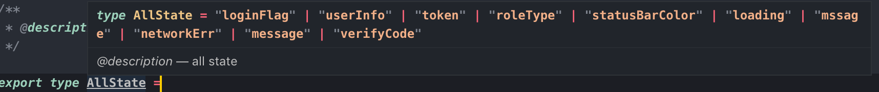 只需定义 类型 去取出所有的 state 种类就好了,像这样: