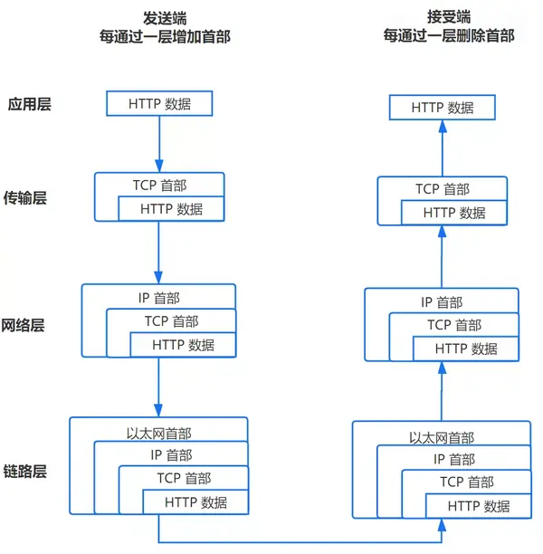TCP/IP 分为四层,在发送数据时,每层都要对数据进行封装: