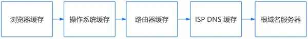 浏览器会先检查是否在缓存中,没有则调用系统库函数进行查询。