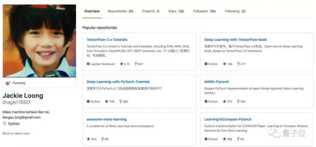 该项目作者是Jackie Loong,也就是书籍封面的龙龙老师,真名龙良曲。