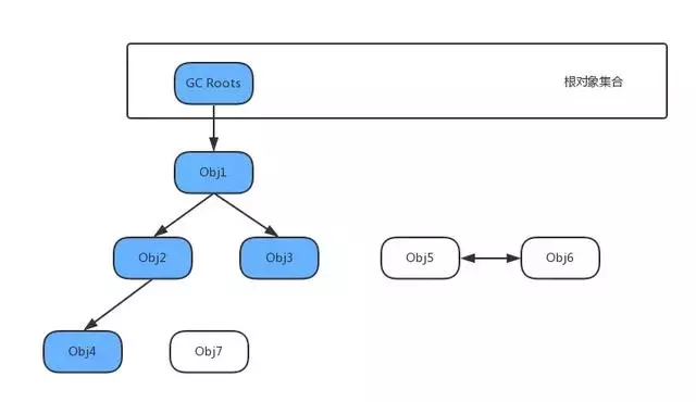 有趣的是,JVM并不是使用相似于 objective-c的 ARC(AutomaticReferenceCounting)的方式来引用计数对象,而是使用了叫根搜索算法( GC Root)的方法,基本思想就是选定少量对象作为 GC Roots,并组成根对象集合,而后从这些作为 GC Roots的对象作为起始点,搜索所走过的引用链( ReferenceChain)。假如目标对象到 GC Roots是连接着的,我们则称该目标对象是可达的,假如目标对象不可达,则说明目标对象是可以被回收的对象。