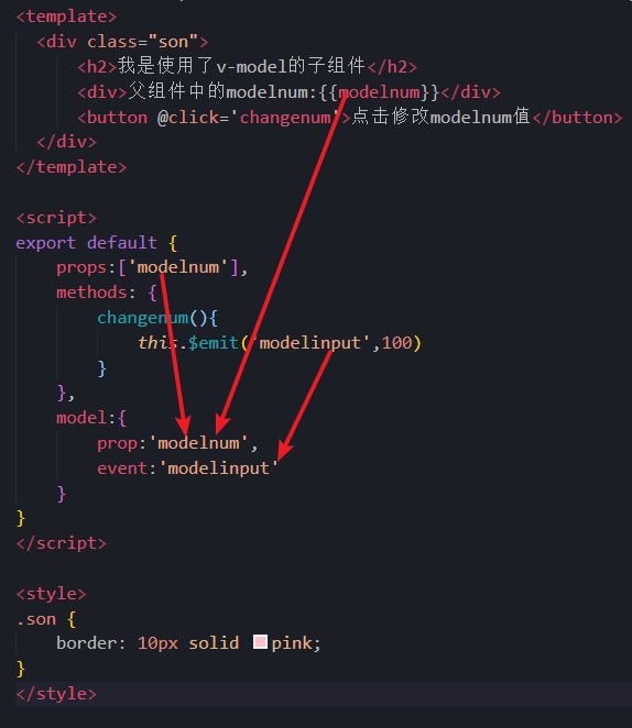 首先写好父子组件,在父组件中定义需要传递的值modelnum