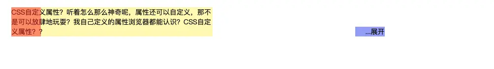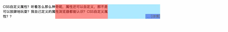 <div class="ell-box__inner fake">CSS自定义属性?听着怎么那么神奇呢,属性还可以自定义,那不是可以放肆地玩耍?我自己定义的属性浏览器都能认识?CSS自定义属性??</div>