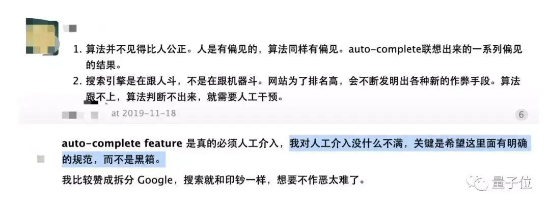 也有网友评论说,干预是没有问题的,毕竟算法来自人,其中也会蕴含偏见,但希望有明确的规范。