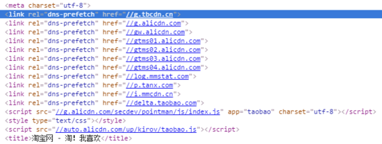 域名解析:从域名查询IP的过程,这个过程一般都很快的,但也会引起延迟。一般浏览器会适当的对解析结果缓存,并对页面中出现的新域名进行预解析,但并不是所有的浏览器都会这么做,为了帮助其它浏览器对某些域名进行预解析,你可以在页面的html标签中添加dns-prefetch告诉浏览器对指定域名预解析,如下: