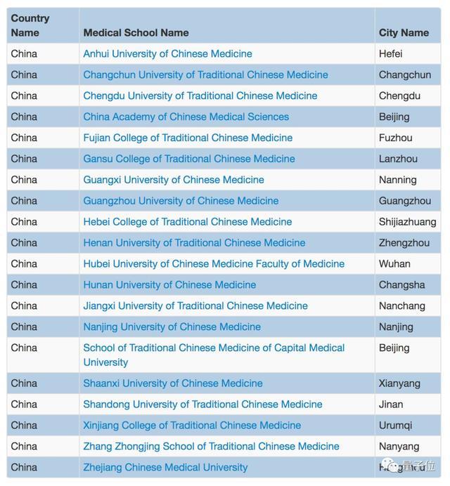如果现在去《世界医学院校名录》的网站上搜索,你会发现虽然有8所中医药大学“消失”了,但位于安徽、福建、甘肃、广西等地的20所中医药大学依然在这份名录上。