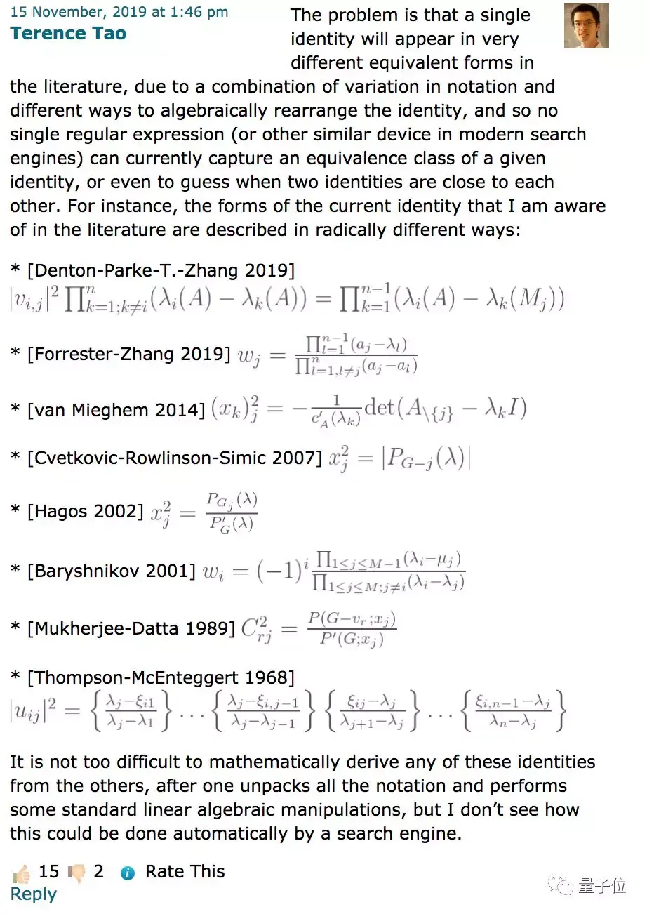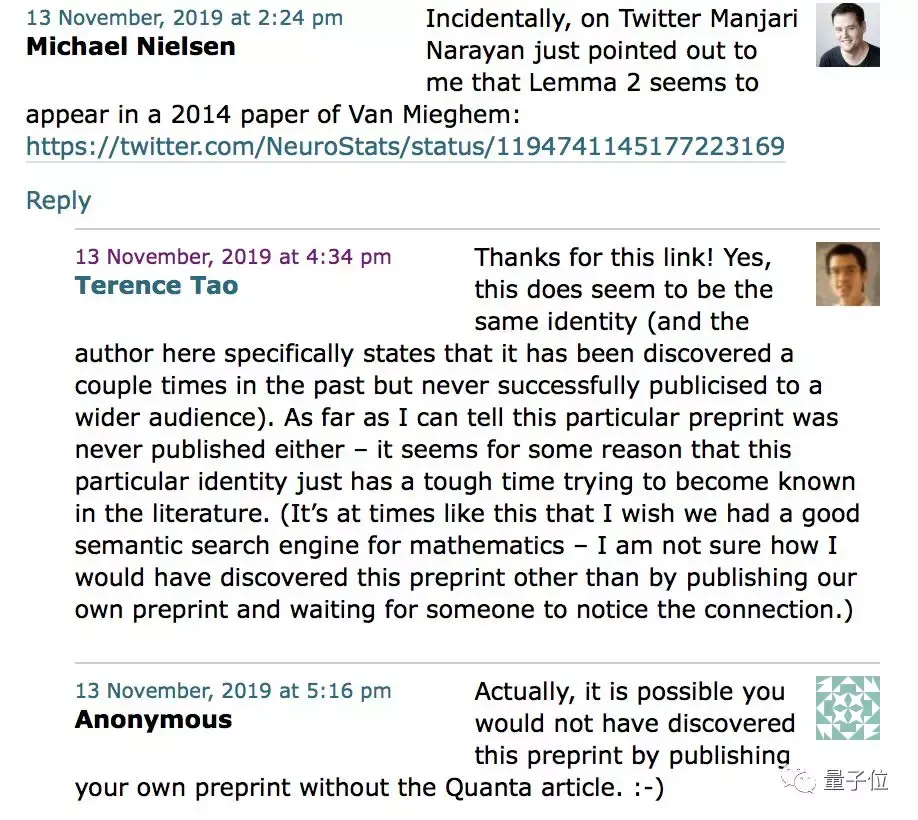 最早是一位来自莱斯大学的女博士生Manjari Narayan指出,陶哲轩发现的这个公式早在2014年就已经在被一位荷兰学者Van Mieghem提出过。