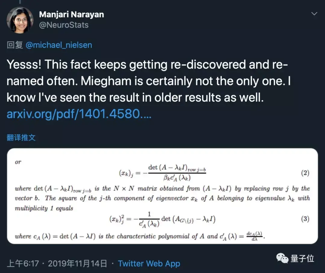 另外,论文中的公式并不是针对所有形式的矩阵,而只是对厄米矩阵(Hermitian Matrix)才成立,也让一些读者对公式的普适性表示怀疑。