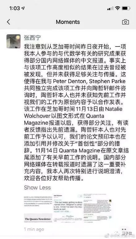 除了陶哲轩以外,三位物理学家之一的张西宁也在个人社交平台作出说明。
