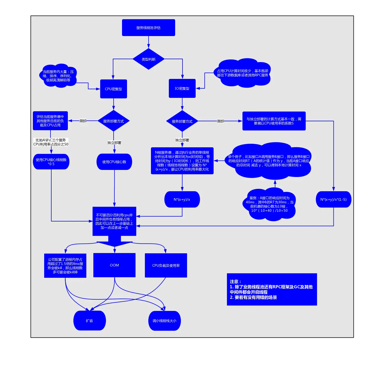 项目刚创建的时候,可以先按照网上的说法根据业务区分CPU密集还是IO密集型服务,定义线程数,但重点是要自定义拒绝策略,加上必要的监控指标比如getActiveCount、getLargestPoolSize等(详见实时指标),确保在线程池的定义是合理的。