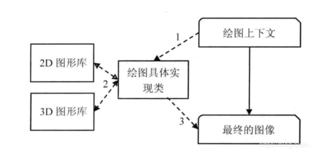 - 绘图上下文是一个与平台无关的抽象类,他将绘图操作侨接到不同的具体实现类。