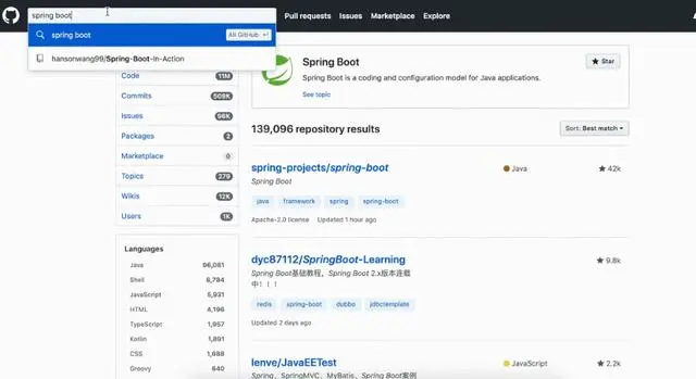 以搜索spring boot为例