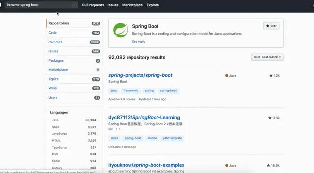 现在得出的都是名字里面带有spring boot的开源项目,但是发现还是有9万多条