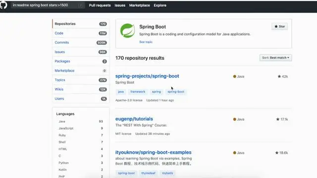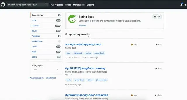 大致的看一下如果单纯的搜索spring boot可能会找不到自己感兴趣的或者说是自己想要的