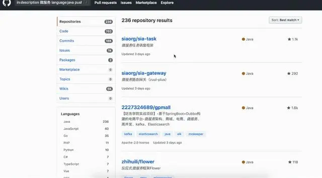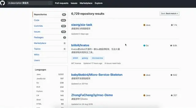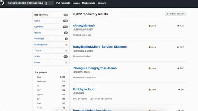如果说想在描述里面搜索,比如搜索当下比较火的的微服务