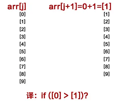 arr[j] > arr[j+1]含义是:j为下标[0],arr[j+1]==0+1=arr[1]下标[0]大于下标[1]吗?- 看这张图: