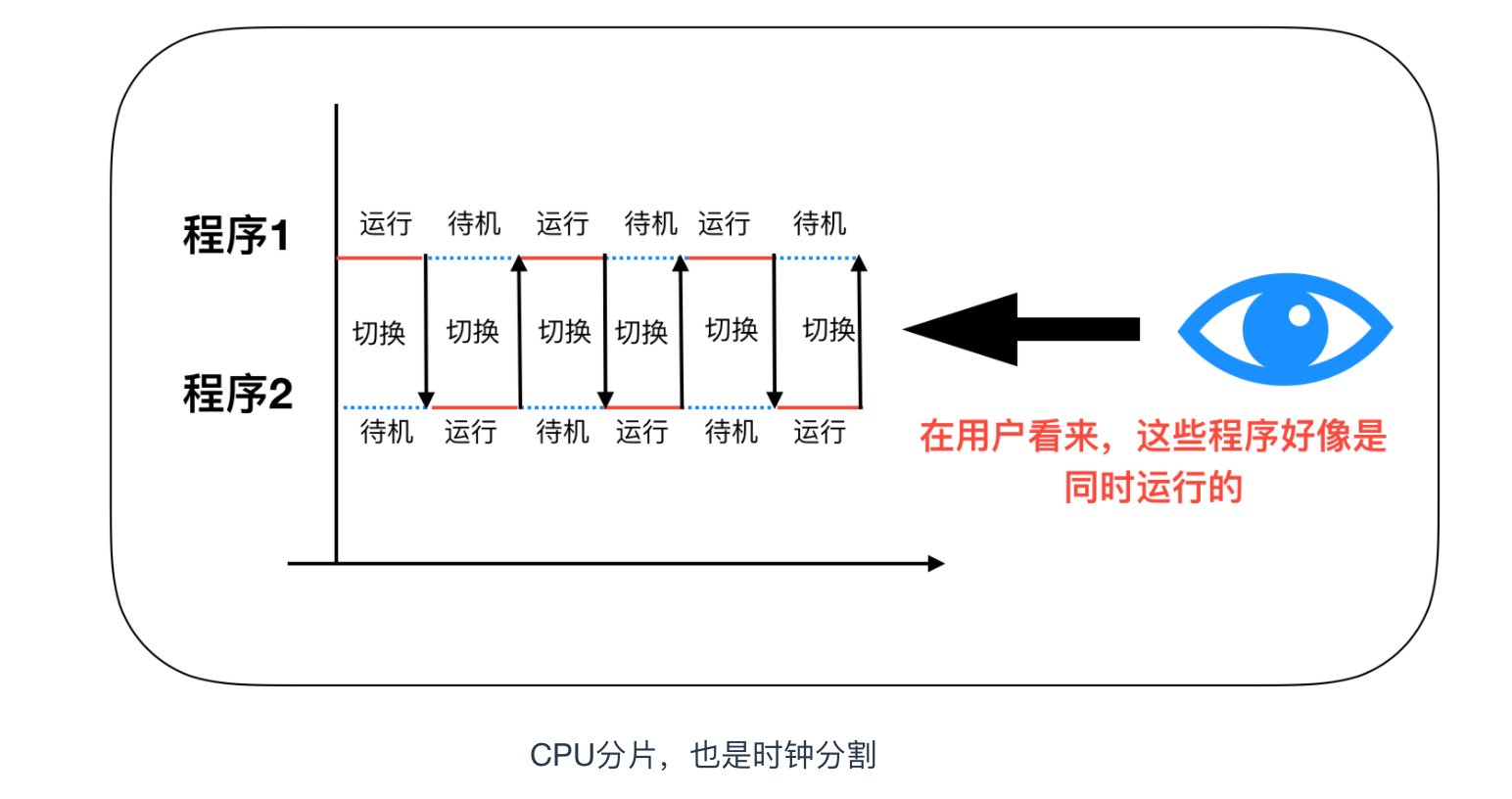 多任务指的就是同时能够运行多个应用程序的功能,Windows 是通过时钟分割技术来实现多任务功能的。时钟分割指的是短时间间隔内,多个程序切换运行的方式。在用户看来,就好像是多个程序在同时运行,其底层是 CPU 时间切片,这也是多线程多任务的核心。