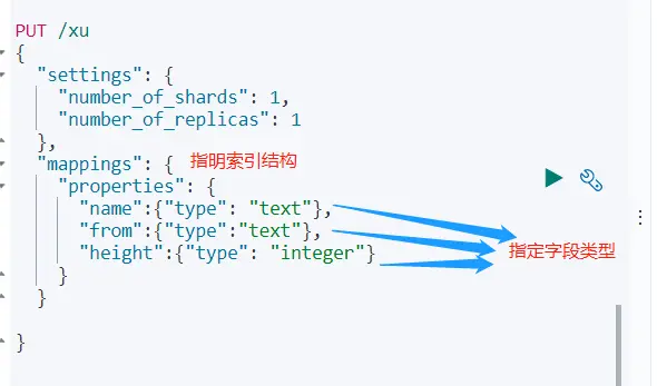 像这种创建索引的时候不指定字段类型的就是非结构化索引,相对的,结构化索引在创建的时候就指明了索引的结构,包括指定具体字段类型: