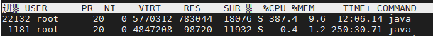 在性能测试的过程中使用 top 看一下 CPU 使用情况,基本满负载运行:
