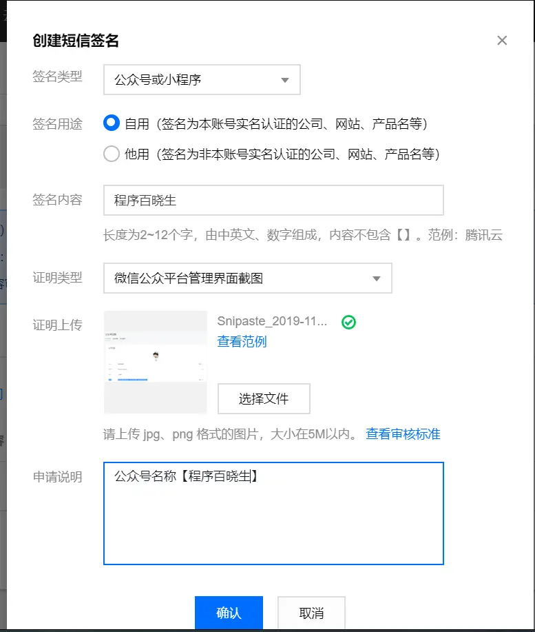 创建短信签名