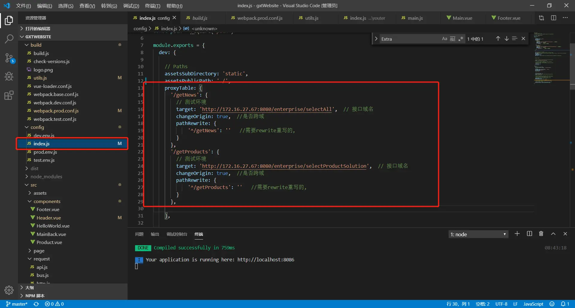 这个nginx配置里面直接写域名,至少后面跟一个方法 /selectAll,虽然我不知道为什么,但是直接域名的话好像不行,还是会404,