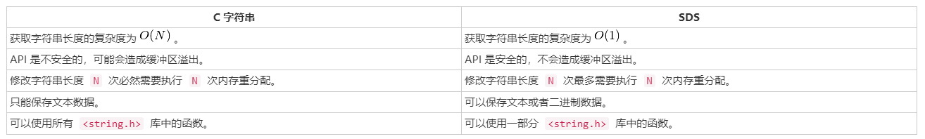 C 语言使用的这种简单的字符串表示方式, 并不能满足 Redis 对字符串在安全性、效率、以及功能方面的要求, 本节接下来的内容将详细对比 C 字符串和 SDS 之间的区别, 并说明 SDS 比 C 字符串更适用于 Redis 的原因。
