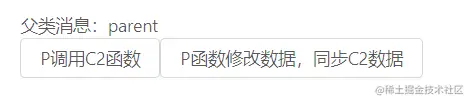 我在demo中将传递函数有两个按钮,“P调用C2函数” 与 “P函数修改数据,同步C2数据”