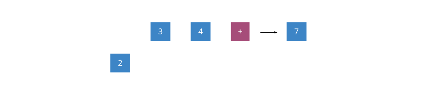 +是二元操作符,需要从栈中弹出两个值3 4,结果为7,重新压入栈中: