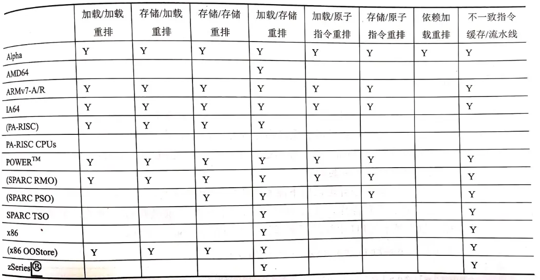 说到这里,并发领域,个人认为最难理解,最晦涩的内存屏障就闪亮登场了,为了保证多线程并发程序的顺序正确性,CPU厂商各自制定了自己的处理器内存模型规则,如下表:
