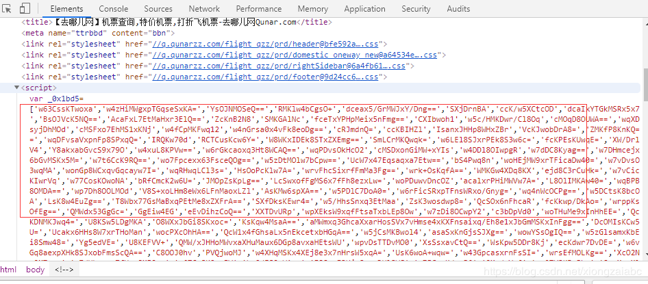本文目标:破解去哪儿网(qunar.com)的主要加密字段pre 我们的目标是获取以下链接返回的数据: https://flight.qunar.com/site/oneway_list.htm?searchDepartureAirport=%E5%8C%97%E4%BA%AC&searchArrivalAirport=%E6%88%90%E9%83%BD&searchDepartureTime=2019-11-16&searchArrivalTime=2019-11-19&nextNDays=0&startSearch=true&fromCode=BJS&toCode=CTU&from=qunarindex&lowestPrice=null