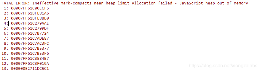 复制这段js到本地、格式化、运行。成功看到:内存溢出报错: