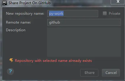 然后点击share就可以了,然后到自己的github上就能看到项目了。