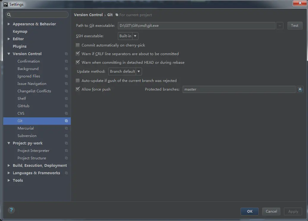 设置git是为了让pycharm能找到本地安装的git在哪。